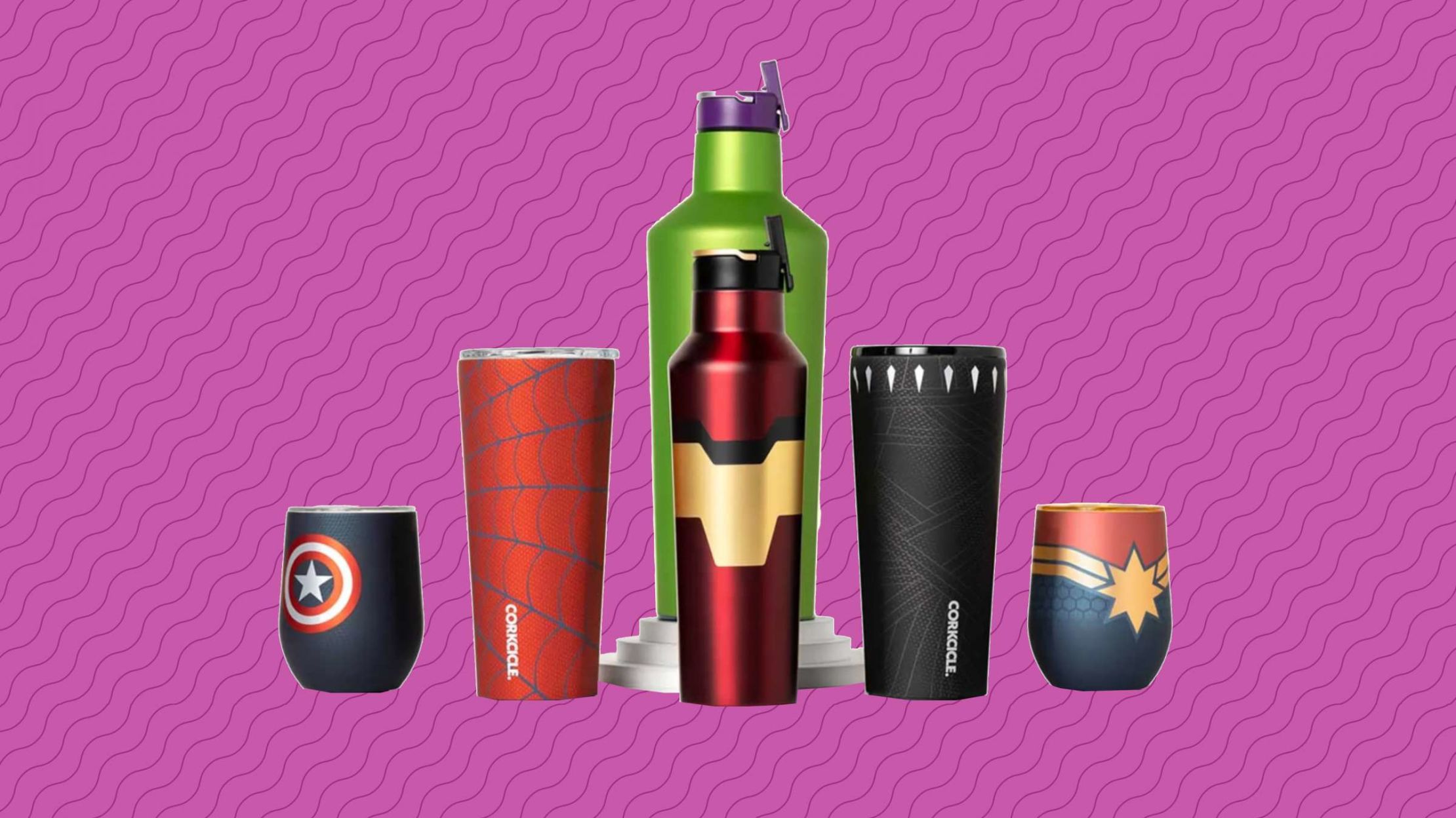 The Corcicle x Marvel drinkware collection features canteens, tumblers, and more with designs based on your favorite Avengers like Captain America, Iron Man, Black Panther, Spider-Man, Hulk, and Captain Marvel. You can also get the drink containers in the Marvel logo print.