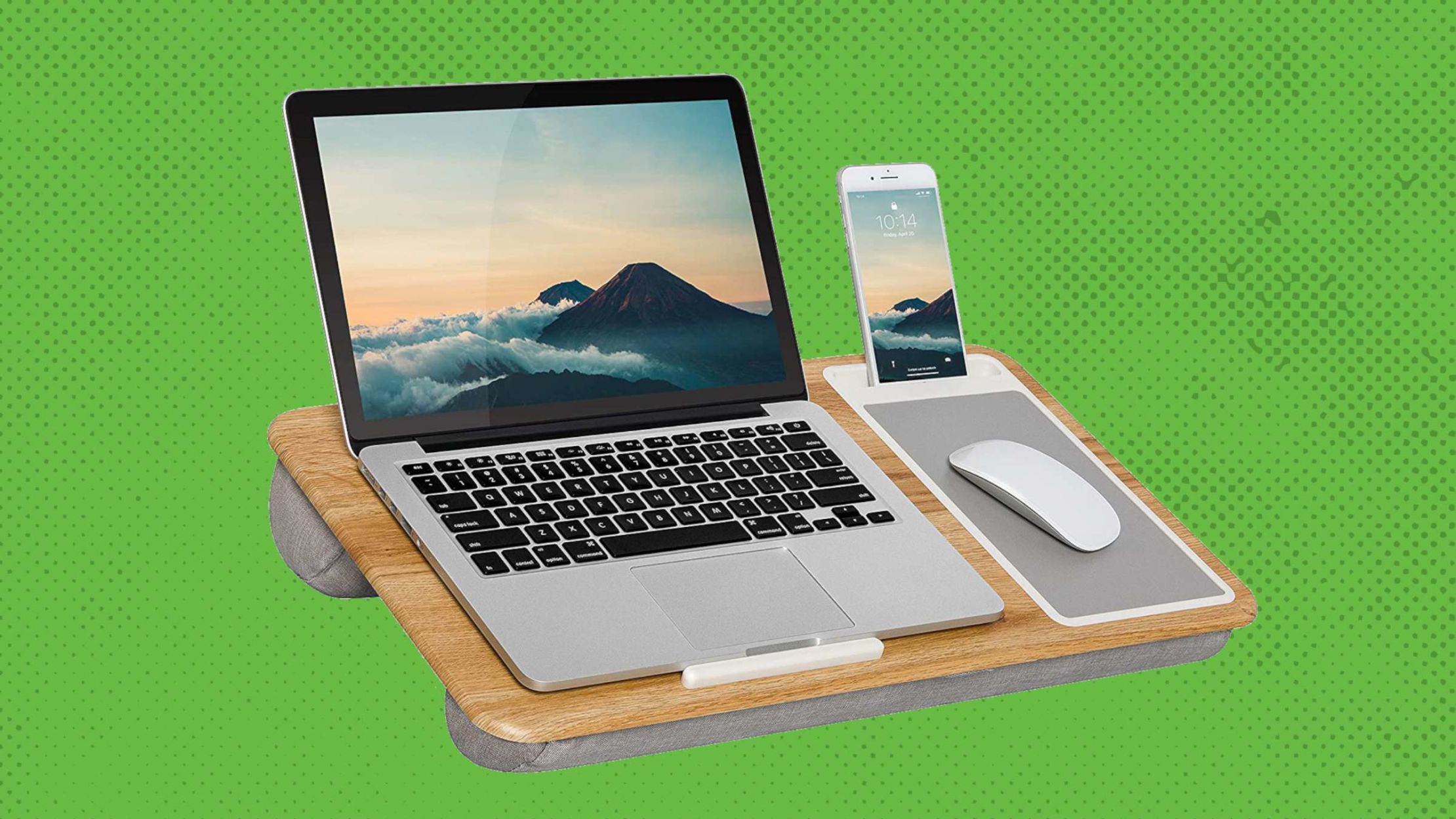 With almost 38,000 reviews and a 4.7-star rating on Amazon, the lap desk can fit laptops and tablets up to 15.6 inches across and includes an integrated 5-inch-by-9-inch mouse pad and cell phone slot for better organization. There’s even a ledge built into the desk to help keep your device from sliding when you’re at an angle.