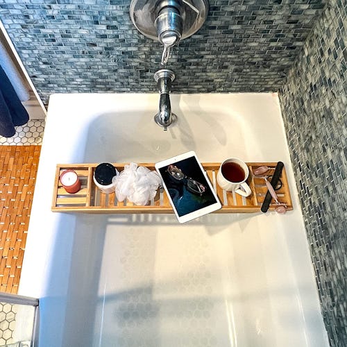 Not only is this bath tray made from stylish bamboo, but it also has space for wine glasses, soaps, scrubbers, or nearly any other item you might want nearby while you’re relaxing in the tub. The best part? At 27 inches wide, it’s large enough to fit nearly any standard-sized tub.
