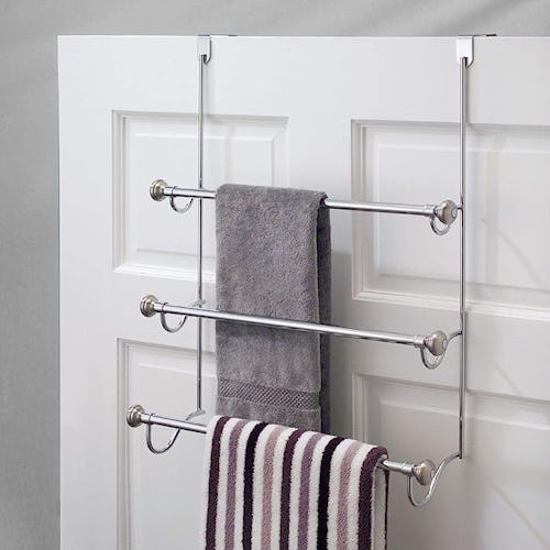 With sturdy hooks at the top that fit over any standard-sized door, this towel rack is an easy-to-install option for anyone who needs a little extra storage space in their bathroom. It’s made from tough steel with brushed stainless steel accents — and you even have two finishes to choose from: brushed nickel or chrome.