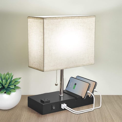 With its sleek, modern base and beautiful woven lamp shade, this bedside table lamp doesn’t just look great — it also charges your devices. Equipped with two USB ports and a standard AC outlet, this dual-purpose lamp has three slots to store your phone and doubles as a phone stand so you can watch your favorite show from the comfort of bed.