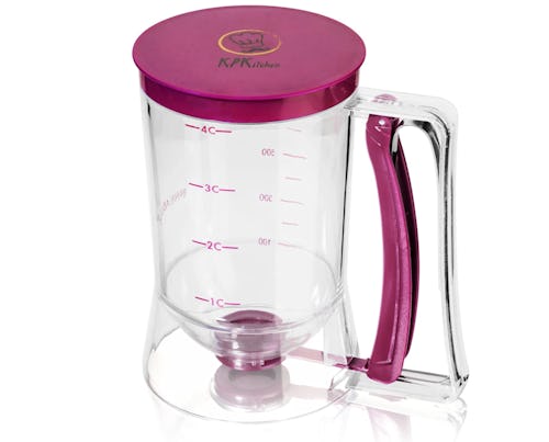 When it comes to making pancakes or cupcakes, the hardest part can be pouring the right amount of batter so that they’re all equal in size (and therefore cook-time). This handy batter dispenser helps you do just that. The sides are marked with measurements and the pull handle allows you to easily and neatly dispense the ideal amount.