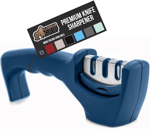 Keeping all your knives, scissors, and blades sharp isn’t as complicated as you think. This knife sharpener can do all of them in a few minutes. Just hold the ergonomic handle and drag the blade through the three slots. If the knife is in bad shape, start with “repair” and move through “sharpen” and on to “polish.” The knives you use frequently can be touched up often with the last two slots. It is small enough to stash in a kitchen drawer.