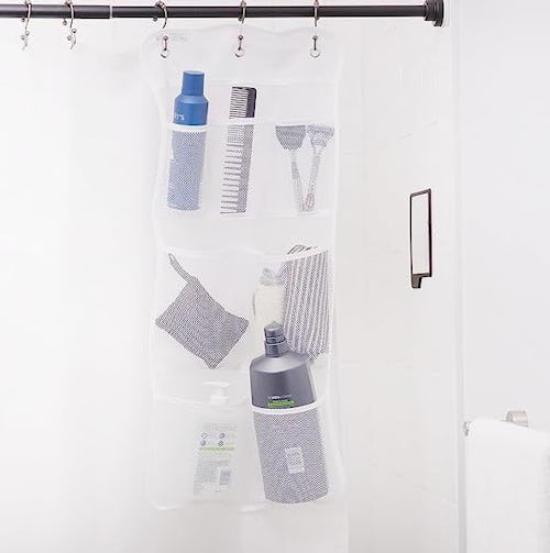 You may think you have no storage space in your shower but have you considered the shower curtain? This shower organizer hangs on three hooks and adds seven roomy pockets to your bathing space. The mesh pockets dry quickly and are clear so you can see what’s in there. “I have a small shower with no place to put any bottles,” said one reviewer. “This has made it possible to put everything I need in the shower.”