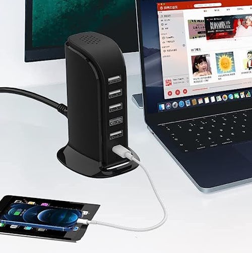 Eliminate the irritation of looking for a plug and an outlet to charge or power your USB devices. Set this USB charging station somewhere convenient and there will always be an easy place to plug in. It has five USB ports and one USB-C port so you can plug in everything from phones and earbuds to laptops. There are eight styles and colors.