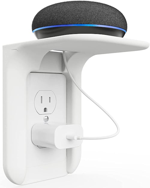 No place to set a speaker, Amazon Echo, or other small gadget? This wall outlet shelf fits over your outlet cover and provides a shelf that is conveniently right near an outlet so you can plug in your phone charger or whatever else you put on it. There is a channel in the back for the cord. “Works great in our bathroom!!! Space saver!” said one reviewer.