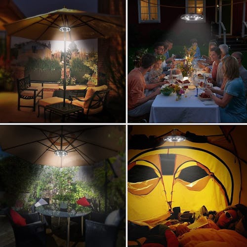 You don’t have to dine indoors when the sun goes down — just add this LED light to your patio table umbrella. The strong clamp on the inside expands to fit nearly any umbrella pole, and it only needs four AA batteries (which are not included) to provide hours’ worth of light.