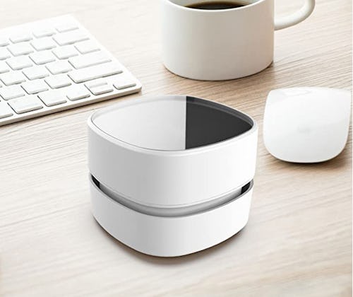 Clean up the cookie crumbs, eraser dust, and all the other spills and detritus that happen on your desk without getting up or hauling out any tools. This desktop vacuum cleaner sits at the ready, looking like a desk ornament on your table. Just press the button, vacuum up the mess, and empty it into the trash. It’s nice to have on the dining room table or counter, too. It comes in five colors.