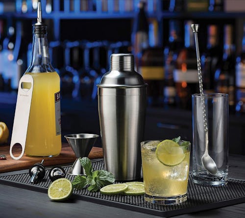 Making cocktails is much easier if you have all the right tools and this seven-piece cocktail shaker set knows what those are, even if you aren’t sure. There’s a shaker with a strainer cover, two pour spouts, a double jigger, a bar spoon, and a flat bottle opener. It even comes with an illustrated guide to making drinks to get you started.