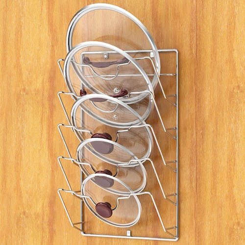 Instead of jumbling through a pile of lids, mount this pot lid rack to your kitchen wall or the inside of a cabinet, and you’ll be able to conveniently see and reach for just the one you need. It has space for up to five lids and mounts in just a few minutes with the included hardware. This is one easy upgrade that will streamline your time in the kitchen fast.