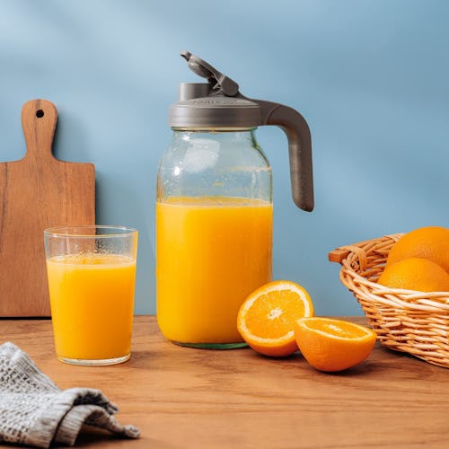 A Mason jar is a classic way to keep things fresh, but if you've ever tried to pour something out of a Mason jar, you know a little spillage is pretty likely. This glass pitcher hybrid offers the perfect solution. It’s outfitted with an airtight and leakproof silicone seal cap that keeps drips at bay, and the integrated handle makes it easy to maneuver. With this, you can easily store and pour up to 64 ounces of juice, water, or any other beverage.