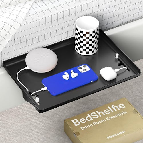 No room for a nightstand? This bedside shelf is the perfect stand-in. It clamps directly to your bed frame, providing a flat, sturdy surface for drinks, tech accessories, books, and anything else you need right by your side. It has a 35-pound weight capacity and features slots that let you thread through charging cables.