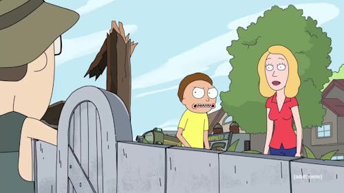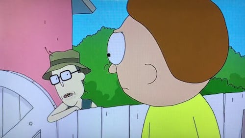 Gene first popped his head over the fence in Rick and Morty Season 3’s “The Whirly Dirly Conspiracy.” After Summer embiggened herself and destroyed the garage while Rick was away with Jerry, Morty yelled at his mother over her stubborn refusal to call Rick for help. The kindhearted Gene was just checking in to see if everything was alright, probably to help if needed — and he got totally abused for it.