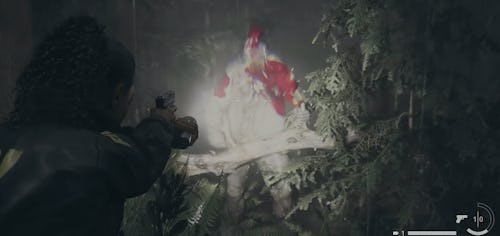 After entering the Witch’s Ladle, the player will reach a point where Saga shimmies through a crevice between two rocks and comes to a large clearing where Nightingale waits, initiating the boss fight. Nightingale is aggressive and will run toward Saga trying to hit her with a big log, so make sure to dodge any incoming attacks. Keep the shotgun equipped during this encounter as the FBI agent likes to get close, and the stopping power of the weapon can quickly take down his health (even in one shot if you aim well!) and reset his attack loop.