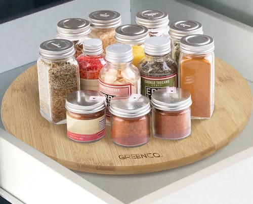 This lazy Susan is made of natural bamboo to give it a trendier and more stylized look in your kitchen than a classic plastic one. The 360-degree spinning design is perfect for cooking oils and spices next to the stove or for tidying up pantry ingredients. It also holds up to 25 pounds, in case you want to use it for a few small appliances.