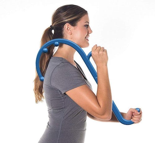 This massaging tool has a slim and compact shape that you can easily tuck under your desk or next to the sofa. It comes with three different hooks and six massaging nodes, so you can easily use it on whatever back or neck muscle is bothering you after work.