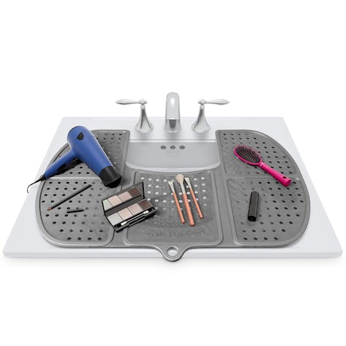 This foldable sink cover can hold all of the things you don’t have countertop space for. Go ahead and toss your brush, skin care products, and even a hairdryer on this durable and heat-resistant cover while you’re getting ready. It also has a cutout that still allows you to wash your hands while it’s in use.