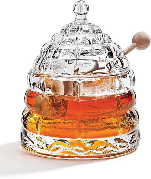 This glass honey jar might just be the most aesthetic thing on your kitchen countertop, and it comes with a functional honey dipper. The dainty (but sturdy) beehive-shaped jar looks stylized, but the handcrafted design is also simple enough to blend in with your kitchen decor.