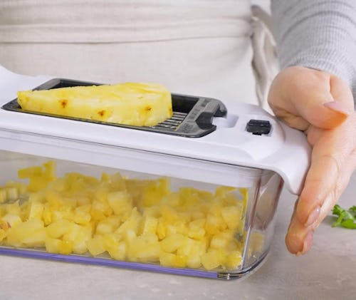 Save time on dinner prep with this vegetable chopper and spiralizer that can handle everything from fruits and veggies to spices and herbs. The best part of all? It's dishwasher-safe on the top rack, so it couldn't be easier to clean when you're done using it. Seven pieces come with this set, including interchangeable blades that can be easily swapped out.