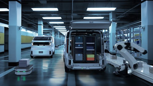 Unlike a cargo container, Toyota is positioning the Kayoibako as equal parts commercial and personal. On the business end, the futuristic-looking van can be configured on the inside for last-mile delivery or even a mobile pop-up shop. There’s also extra seating to act as a small-ish shuttle bus.