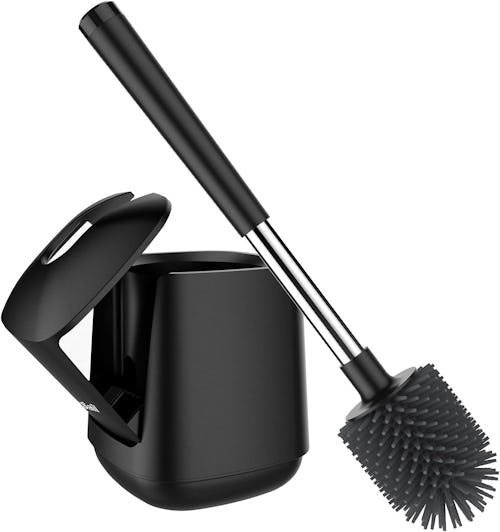 Looks aren’t everything, but you’ll be glad to showcase this sleek black toilet brush and holder in your bathroom. Made with flexible silicone bristles, it’s durable and easy to rinse clean as needed. The base is also ventilated to allow airflow and promote faster drying.