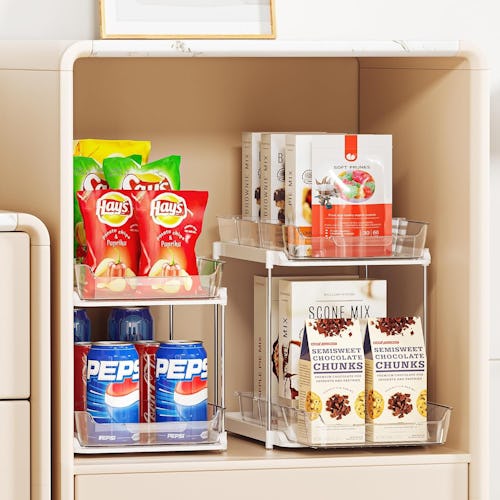 Never lose track of a food item again with these multipurpose organizers. Sold in a set of two, each organizer has two tiers that contain pull-out shelves for easy access to your stuff. Use them to store pantry items, drinks, toiletries, and anything else in your life that could be a little more tidy.