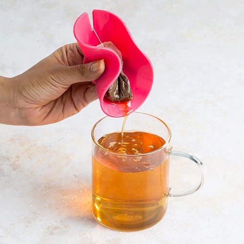 If you’re tired of tea bag strings falling into your mug, this silicone tea bag holder is ready to fix the problem. It holds up the tag to prevent it from slipping into your piping-hot drink. It also keeps your tea warm by sealing in its heat and makes it easier to remove the tea bag from your mug without dripping all over the place.