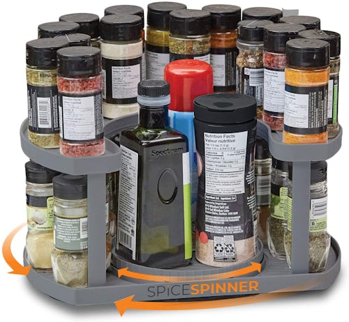 Turn your cupboard into a high-functioning spice rack with this spice organizer that spins so you can see what’s in the back. A center spinner lets you keep larger bottles of oil or vinegar handy, too. The shelf height is adjustable. “I can fit almost all of my spices on here and can quickly locate them when needed,” said one reviewer.