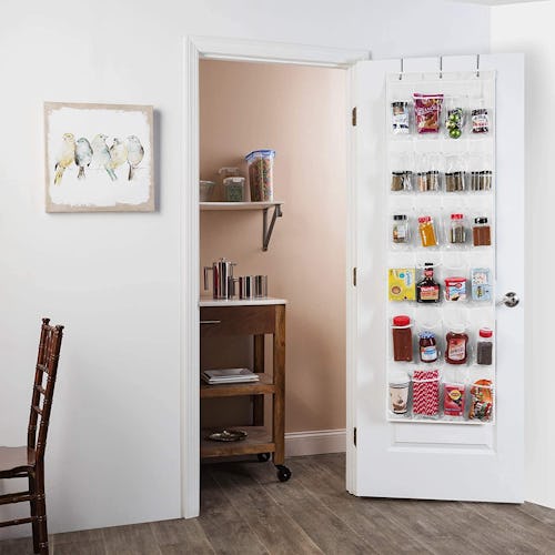 These over-the-door organizers can help prevent shelf clutter since they include 24 clear pockets each. You can easily hang them in a bathroom for toiletry storage or in a pantry to keep spices, condiments, cooking needs, and more in sight. Plus, the adjustable hooks are made of stainless steel.