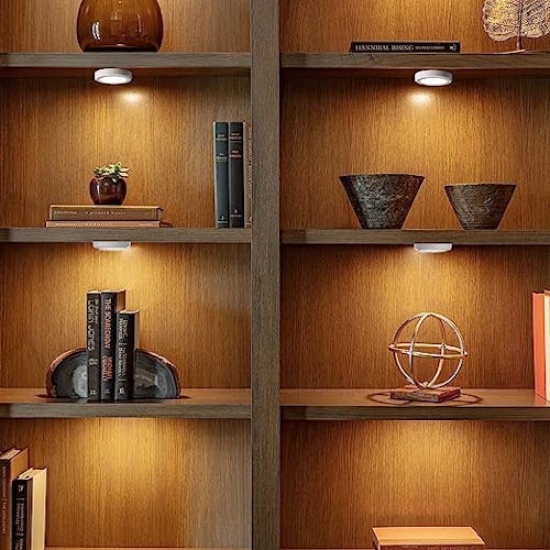 Turn your shelves into illuminated display cases. Create task lighting in the kitchen or garage. Light a dark closet. These LED touch lights make it easy to do exactly what you want to do with light. They stick to most surfaces or screw on, throw a warm light, and you simply tap the lens to turn them on and off. This is a pack of two.
