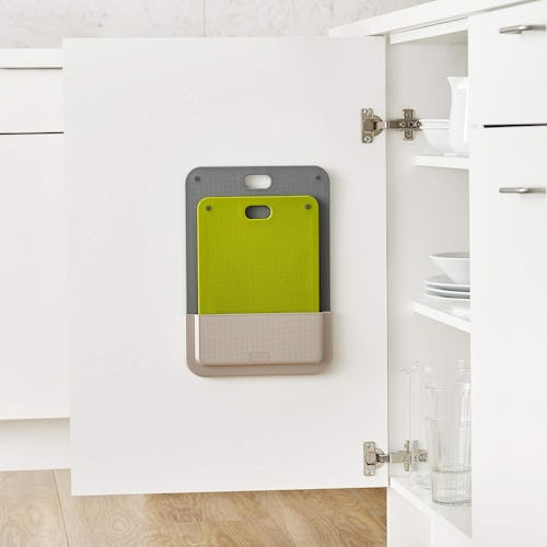 This elegant cutting board set doesn’t leave you to solve the problem of storage. The two boards come with a custom mount that sticks to the inside of a cabinet door so the boards are easy to keep within reach. “The sizes are perfect, the holder is secure, and I can be sure that nothing else is touching them which saves me from having to re-wash a board every time I want to use one,” said one reviewer.