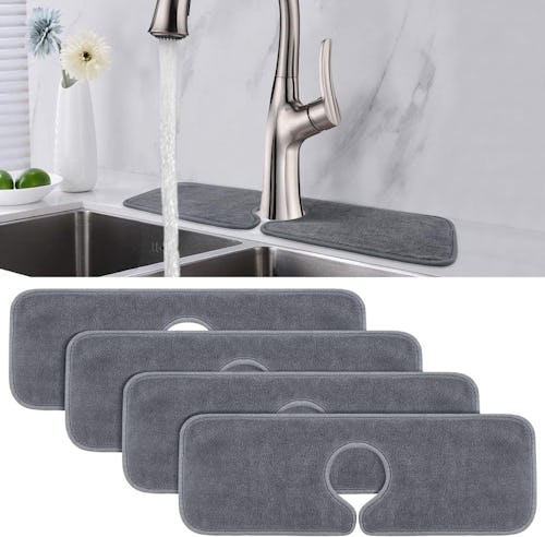 Install these splash guards around your sinks to protect your countertops from water stains. They’re made from microfiber for absorbency and can be cleaned in the washing machine to stay in top shape. The splash guards (the set comes with four of them) are 17.7 inches long and 4.7 inches wide with a 2.5-inch faucet hole diameter that’ll fit on many sinks. A larger option is also available in the listing.