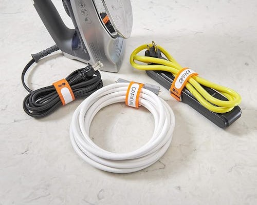 Get better organized with these hook-and-loop straps; use them to wrap and store various cords, cables, wires, and more. Each strap in the pack of 18 has a tab that you can use to label it. Other lengths and colors are available in the listing.