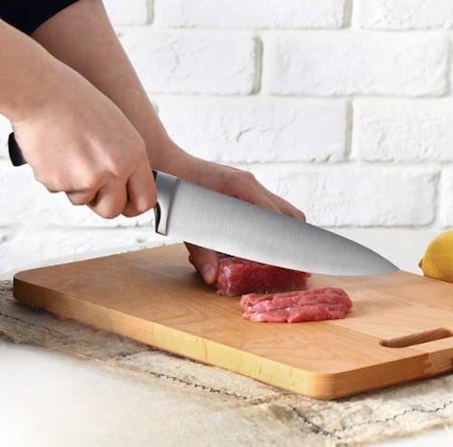 This durable sharp chef’s knife made from a single piece of stainless steel