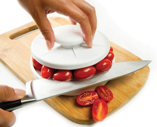 This non-slip and scratch-resistant produce holder seriously speeds up all of the chopping that comes along with dinner prep. Simply add in fruits, veggies, or whatever you need to prep, put the lid on top, and press down on the handle to keep them all in place while you slice. Not only will it create perfectly sliced tomatoes and grapes, but this holder is even an easy way to cut chicken cutlets or thinly sliced tofu.