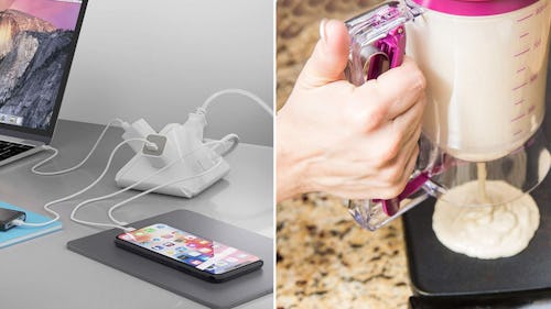 This batter dispenser with an easy-to-use dispensing handle will keep your countertop perfectly clean when you’re making pancakes or baking. It comes with measurements on the side, so it’s even easy to dispense the exact same amount of batter in each cupcake liner or on the griddle. It also has a wide design and removable lid on top, so you can fill it up with batter without making a mess.