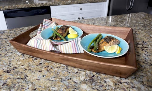This stylish, expensive-looking serving tray with easy-to-hold handles