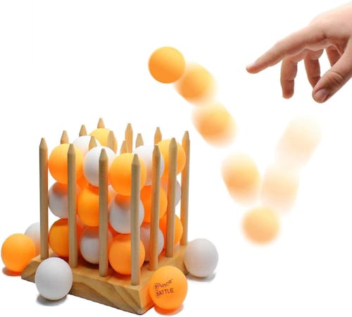 Give the gift of fun with the Bounce Battle game set. Featuring a wooden base with vertical stakes, the goal is to bounce the table tennis-style balls into the structure in a variety of ways. You can aim to play tic-tac-toe, try to get the ball into a specific quadrant for a trick shot, or any other set of rules that brings out your competitive nature.
