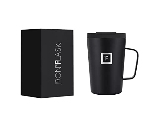 IRON °FLASK Grip Coffee Mug 2.0-12 Oz, Leak Proof, Vacuum Insulated Stainless Steel Bottle, Double Walled, Thermo Travel, Hot Cold, Water Metal Canteen - Midnight Black