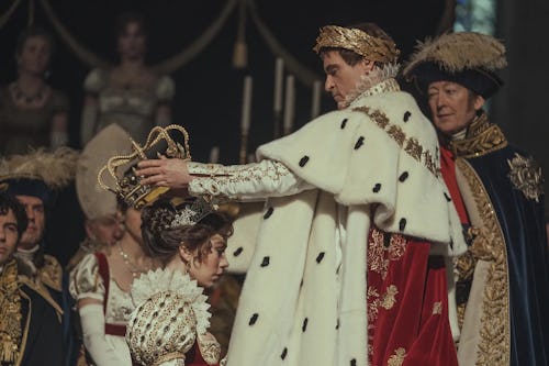 Joaquin Phoenix plays Napoleon Bonaparte by way of The Office’s Michael Scott, un-written from the history books penned by sore winners and re-told in speculative fashion, as though the movie were chronicling an ambitious myth-maker. Like French history’s Forrest Gump, he’s in all the places he shouldn’t be — including the execution of Marie Antoinette — bearing witness to the first chapter of a story he hopes to write as he climbs in military rank.