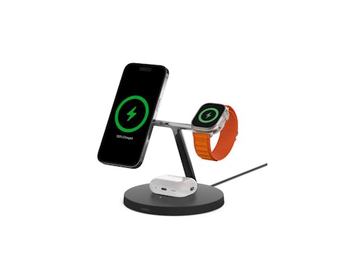 As the name suggests, the Belkin BoostCharge Pro 3-in-1 was designed to simultaneously and wirelessly charge an iPhone, Apple Watch, and AirPods.