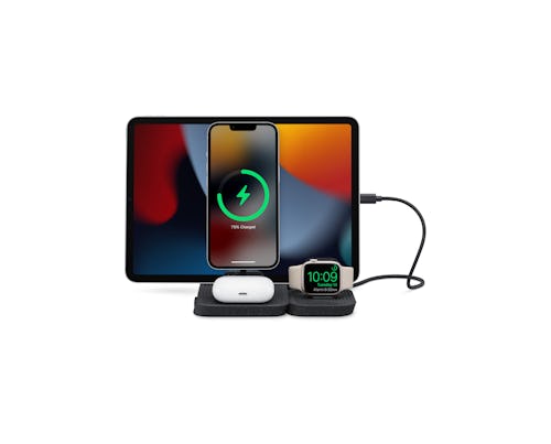 Simultaneously charge your MagSafe-supported iPhone (up to 15 watts), iPad (including Air, Mini, and Pro), Apple Watch, and AirPods/AirPods Pro, on this one solution — for your night table, desk, or kitchen countertop.