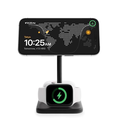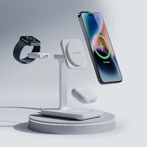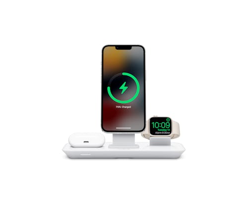 While not quite as fancy as some of the other 3-in-1 solutions listed here, this Otterbox magnetic wireless charger station holds and powers an iPhone, AirPods, and Apple Watch.