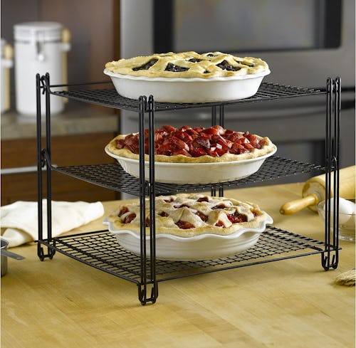 This heavy-duty cooling rack has three tiers, so you can cool (and display) lots of baked goods, without taking up more counter space. With a wire-mesh design to optimize airflow, this rack also features plenty of space between each level, making it easy to cool taller items like canelés and bundt cakes. It’s finished with a nonstick coating and collapses for convenient storage.