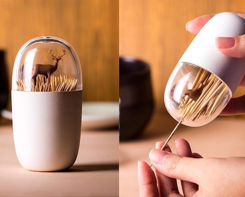 Adding a little quirk to your kitchen, this toothpick holder features a miniature deer figurine, so when it’s filled with toothpicks, it evokes a deer standing in a peaceful meadow. This two-piece holder comes with a clear, detachable lid for easy filling — but the hole at the top means you can easily dispense one toothpick at a time.