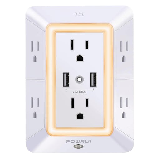 Turn your two-socket outlet into a complete charging station with this fan-favorite outlet extender. It’s equipped with six standard sockets and two fast-charging USB ports that allow you to power up all your devices and appliances at once. It has a built-in surge protector and even its own smart night-light, complete with a touch sensor for extra illumination when you need it.