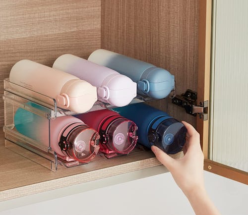 Upgrade the way you store your water bottles — and even wine bottles — with this stackable organizer. The shelves fit in most cabinets and can hold up to three bottles each, while keeping them in place to prevent rolling. You can even use them in the fridge for cold water that’s ready to grab and go.