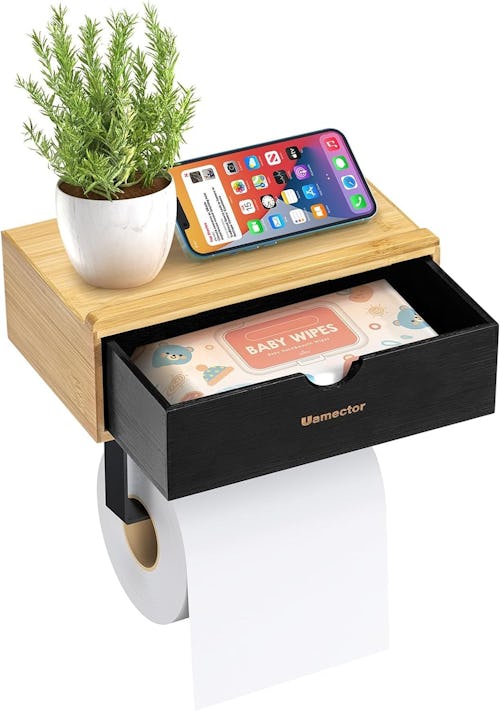 Uamector Bamboo Toilet Paper Holder with Phone Shelf