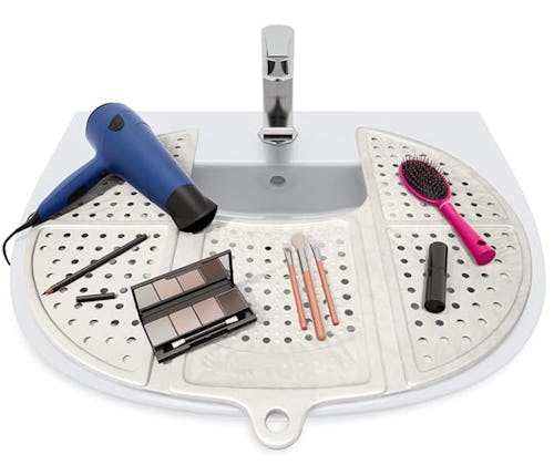 Ideal for small spaces, this foldable sink cover instantly maximizes counter space. It’s designed from nonslip silicone rubber and is heat-resistant up to 480 degrees so you can leave your hot tools on it without a care in the world. It can hold up to seven pounds of items and comes in two different sizes and three colors.