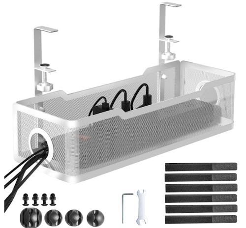 This cable management tray has a simple design that will seriously keep all of your wires and cords tidy. It easily attaches directly to your desk frame and comes with a clamp for a secure attachment. The kit also comes with four cable clips and six cable ties to make the organization process a breeze.